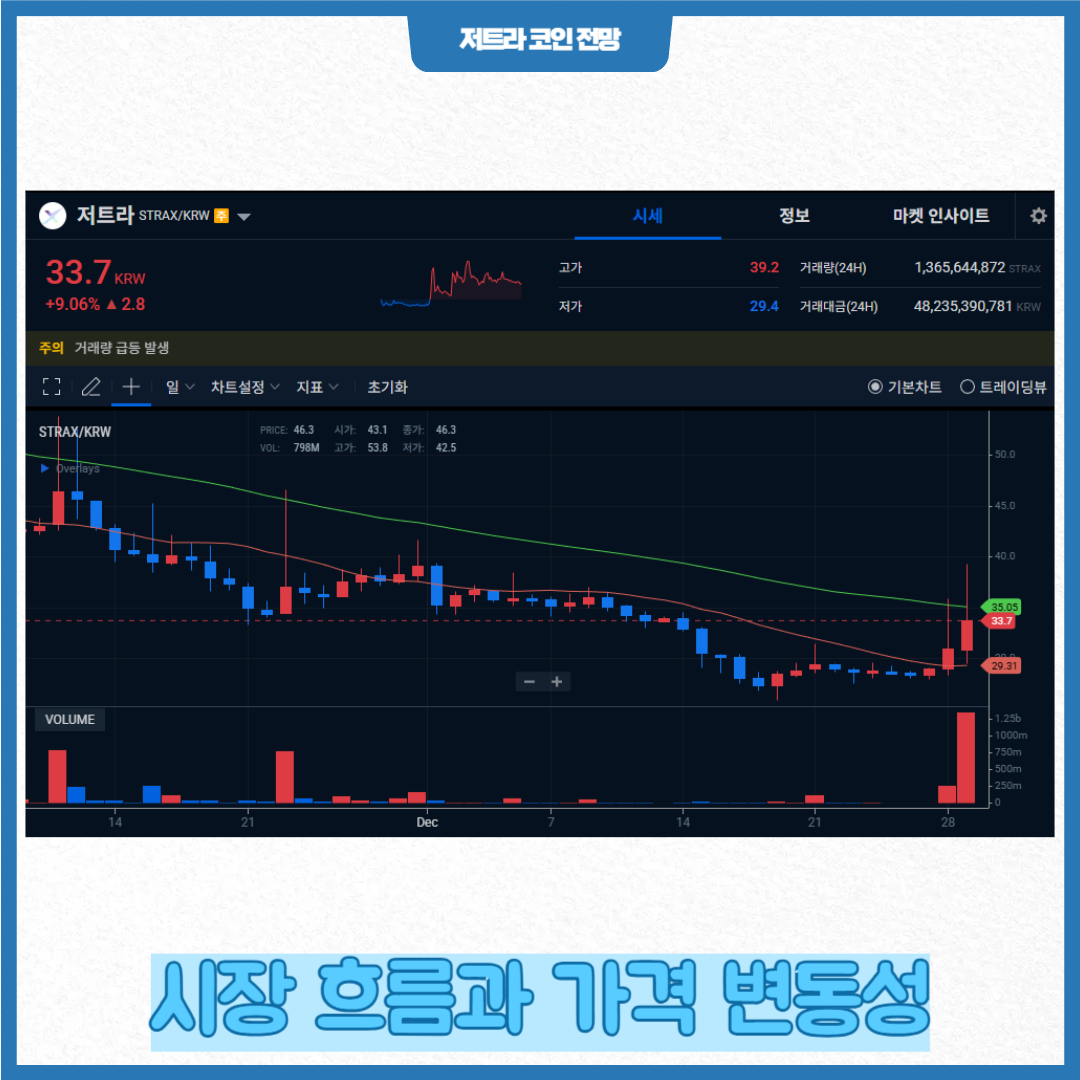 저트라 코인의 가격 흐름은 전체 가상자산 시장 분위기에 영향을 받는 경향이 큽니다. 비트코인과 이더리움의 움직임에 따라 동반 상승하거나 하락하는 모습이 나타나며, 프로젝트 관련 이슈나 업데이트가 있을 경우 단기적인 변동성이 확대되기도 합니다.