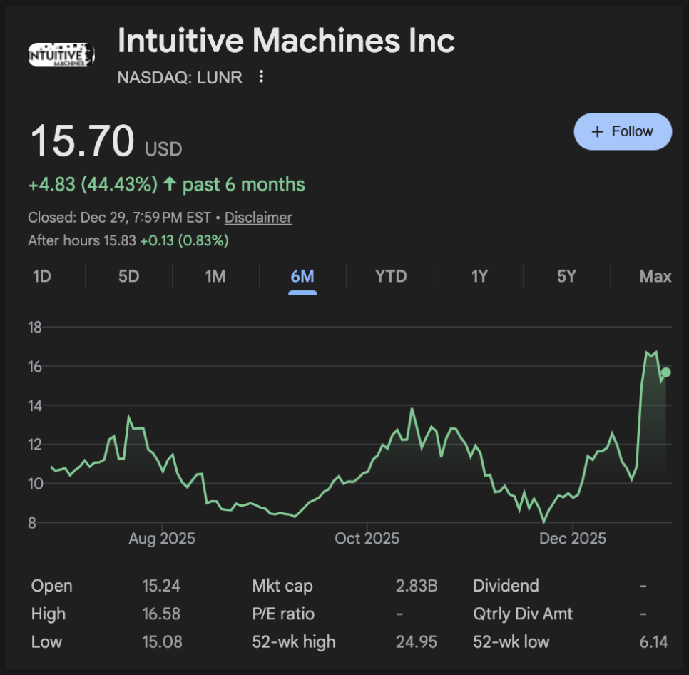 2025년 12월 30일에 다룰 종목은 인튜이티브 머신스(LUNR) 되겠습니다.