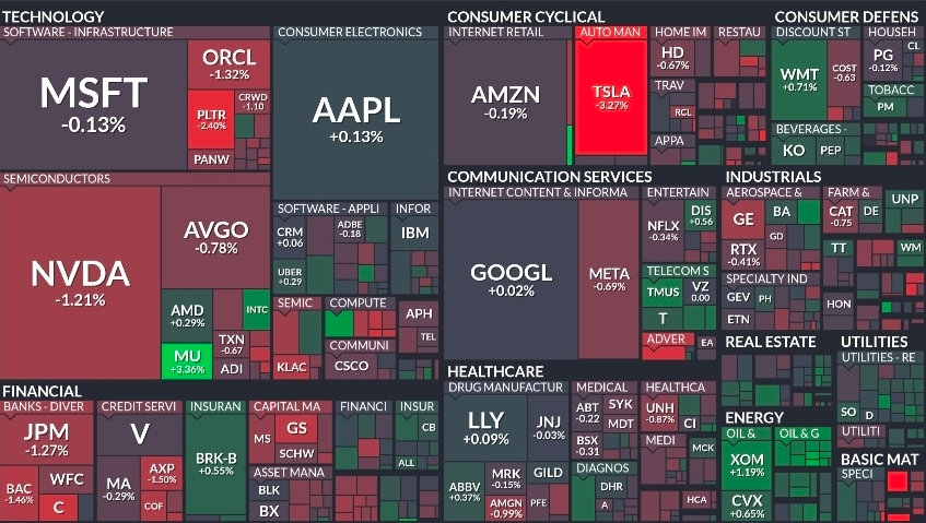 대형 기술주 내부에서도 흐름이 갈렸습니다. 애플은 상대적으로 견조했지만 엔비디아 테슬라 브로드컴 등 AI와 성장 스토리의 중심에 있는 종목은 조정 압력이 더 크게 나타났고 금융과 산업 일부는 상대적으로 방어적인 색깔을 보였습니다. 이는 시장이 성장 테마를 포기했다기보다 올해 후반 누적된 기대를 점검하며 실적과 밸류에이션의 균형을 다시 맞추는 과정으로 보는 편이 자연스럽습니다.