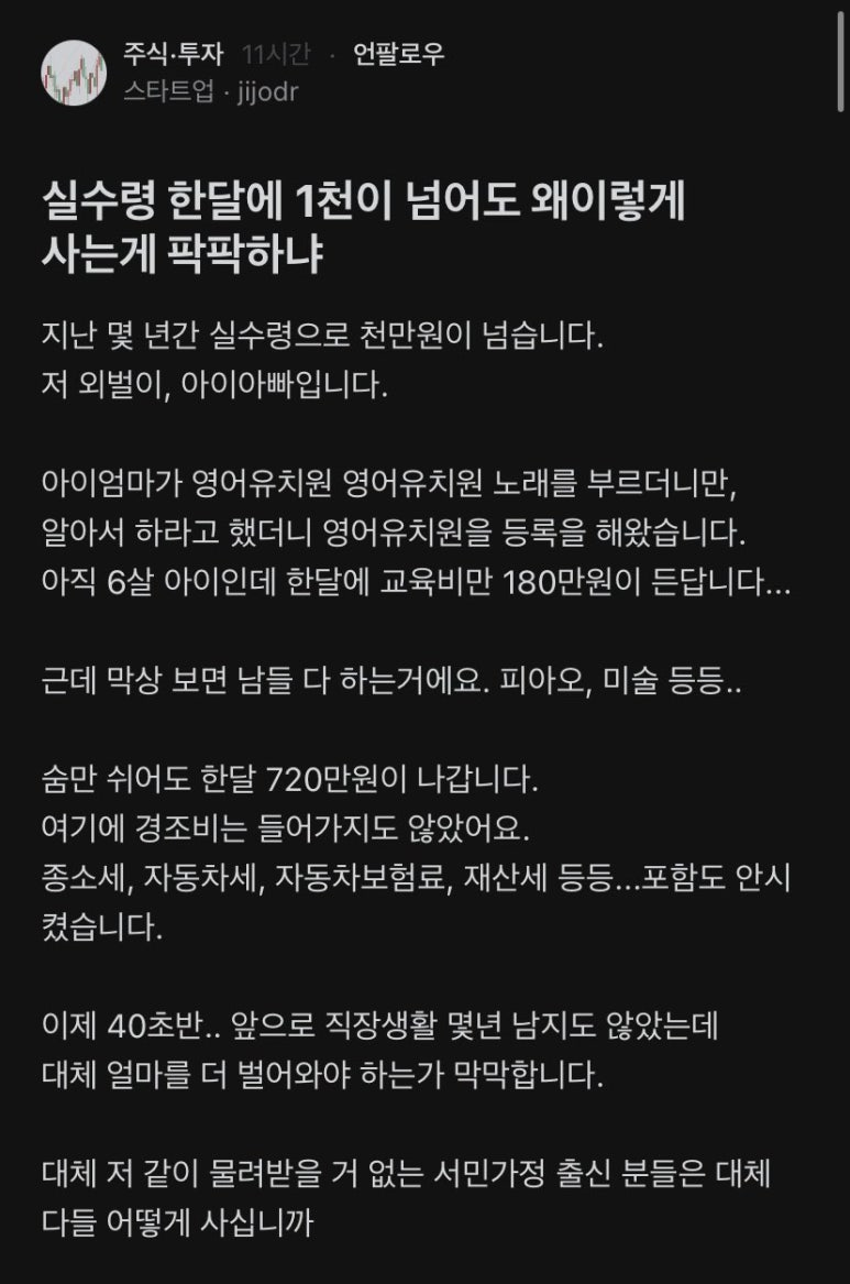 '실수령액 1천만원 벌어도 삶이 힘들다'
