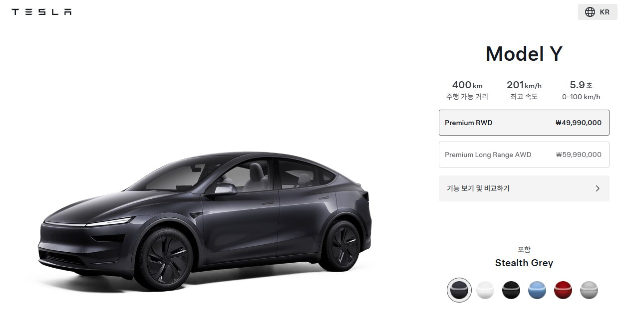 Premium으로 이름을 변경하고 RWD는 4,999만원, Long Range AWD는 5,999만원이 되었습니다. 차량 가격을 낮추고 FSD를 더 많이 팔겠다는 자신감으로 보일 수도 있는데, 개인적으로는 26년에 HW3 이상의 하드웨어가 탑재된 모든 테슬라가 FSD를 쓸 수 있게 될 것 같습니다.