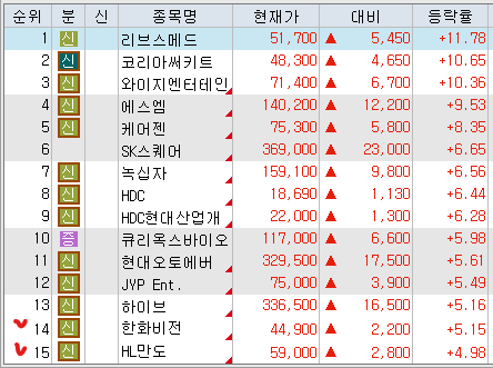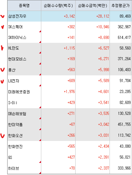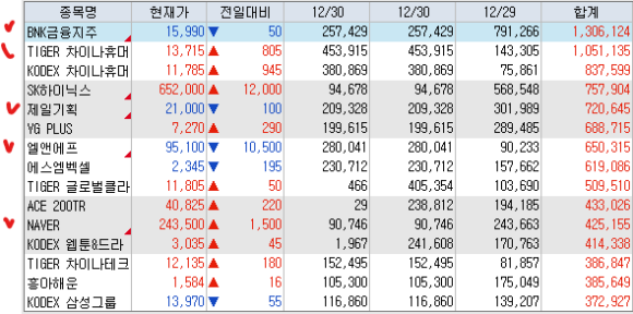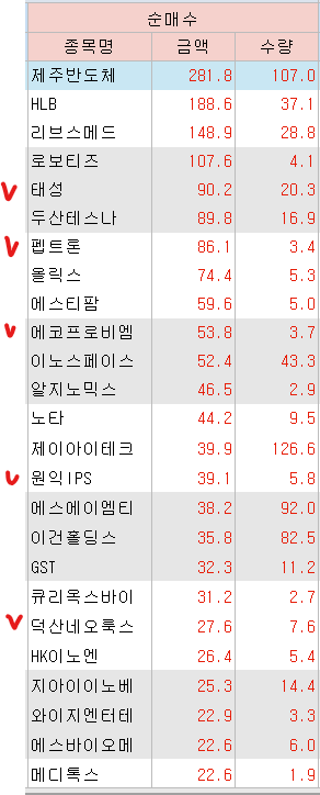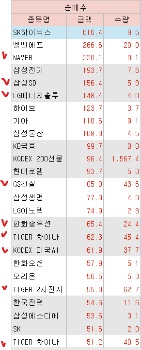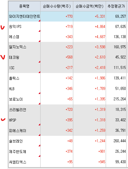 매도 : 대한항공 Tiger차이나휴머노이드로봇 POSCO홀딩스 삼성전자(+67.05%) LS 카카오 JYPEnt 엔씨소프트 제주반도체(+41.67%) 테크윙 와이지엔터 알테오젠 파마리서치 에브리봇(+34.02%) 레이크머티리얼즈 HPSP 엘케이켐