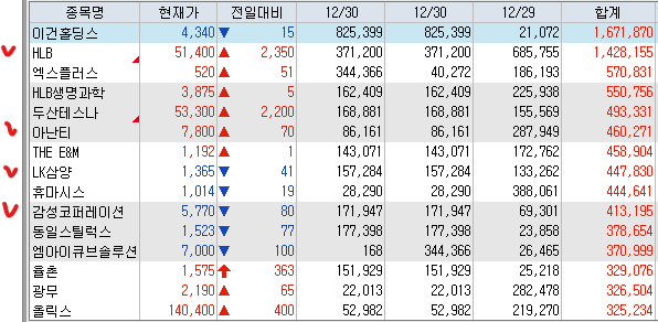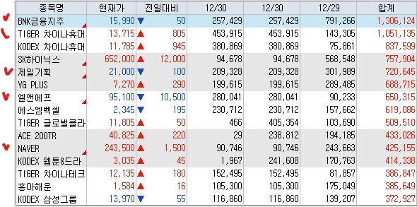 매수 : 맥쿼리인프라 Tiger미국30년국채커버드콜액티브 삼성SDI 이노와이어리스 골프존 제이알글로벌리츠 삼성전자우 LG에너지솔루션 GS건설 Tiger차이나전기차 Kodex미국AI테크TOP10 펩트론 에코프로비엠 에코프로