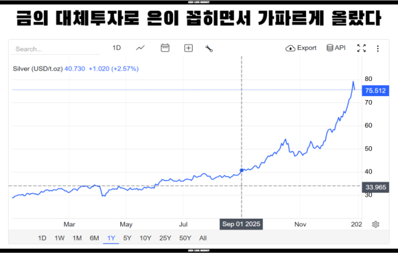 은이 고공횡진, 사상최고가를 찍고 날아가고 있다. 은이 이렇게 갑자기 가격이 오르는 이유로는 산업에 사용되는 수요가 폭발적으로 증가하고 글로벌 경제가 불안정해지면서 달러가 약세가 되어 상대적으로 금보다 저렴해 대체제로 은을 투자하고 있고 공급이 부족하기 때문이다. 그리고 사람들의 투자심리도 "아 금이 너무 올라 다른 안전자산으로 무엇을 투자하지 ?" 고민하다가 달러 아니면 은을 택하고 있다.