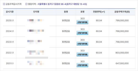 해당 사업지의 매물을 보면, 평당 1억까지도 거래되었다. 이만큼 P를 주더라도 새 아파트를 얻겠다는 강력한 의지까지 보인다. 공시지가를 살펴보면, 재개발 빌라인데도 상당히 높은 것을 알 수 있다. 빌라인데도 노량진뉴타운의 영향으로 땅값이 올라가 공시지가가 매우 높다. 빌라는 평당 3,200만원~5,200만원을 넘어 매우 높은 가격을 형성하고 있다. 공시지가가 올라간 만큼 P도 올라가고 감정평가액도 올라간다. 감정평가액은 평당 4,200만원으로 가정했고 총 조합원 종전자산평가액은 5,156억이다.