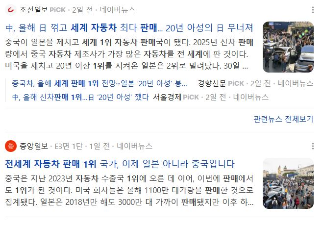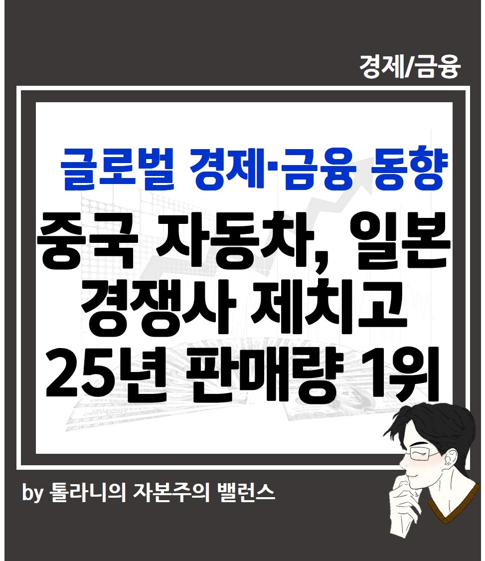이에 ‘중국 자동차, 일본 경쟁사 제치고 2025년 세계 판매량 1위로 등극’ 관련하여 한국무역협회에서 제공하는 자료를 통해 좀 더 자세히 알아보도록 하겠습니다.