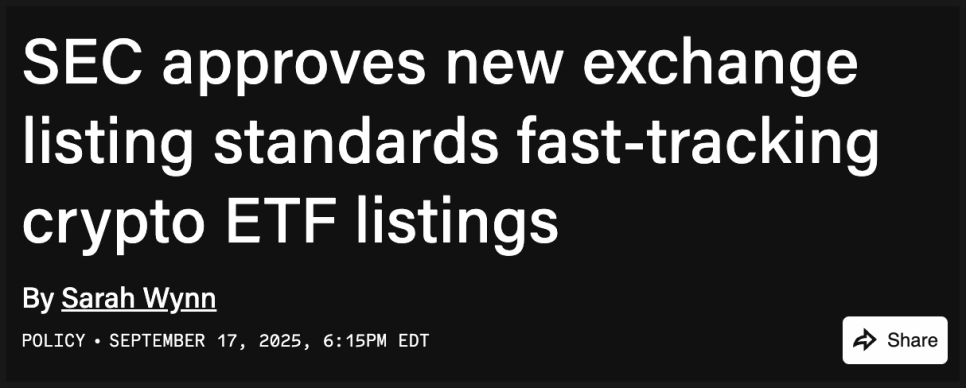 이런 자신감의 배경에는 규제 변화가 있습니다. 2025년 9월, 미국 증권거래위원회가 크립토 ETP에 대한 일반 상장 기준을 간소화하면서 승인까지 걸리는 시간이 최대 240일에서 빠르면 75일 수준으로 줄었습니다. 예전보다 훨씬 빠르게 ETF를 시장에 내놓을 수 있게 된 겁니다. 여기에 비트코인과 이더리움뿐 아니라 솔라나, 카르다노, XRP까지 담은 멀티자산 상품의 상장도 허용되면서, 규제 당국의 태도가 한층 유연해졌다는 신호도 나왔습니다.