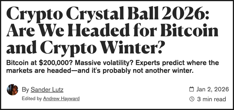 마지막으로, 새해를 맞은 기념으로 애널리스트 전망 몇 가지 살펴보겠습니다. 비트코인이 2025년 하반기에 고꾸라지면서 4년 주기설이 아직 힘을 얻고 있는 가운데, 올해에 크립토 겨울이 시작되는 것이 아니냐는 의견이 많은데요. 전문가들의 생각은 어떨까요?