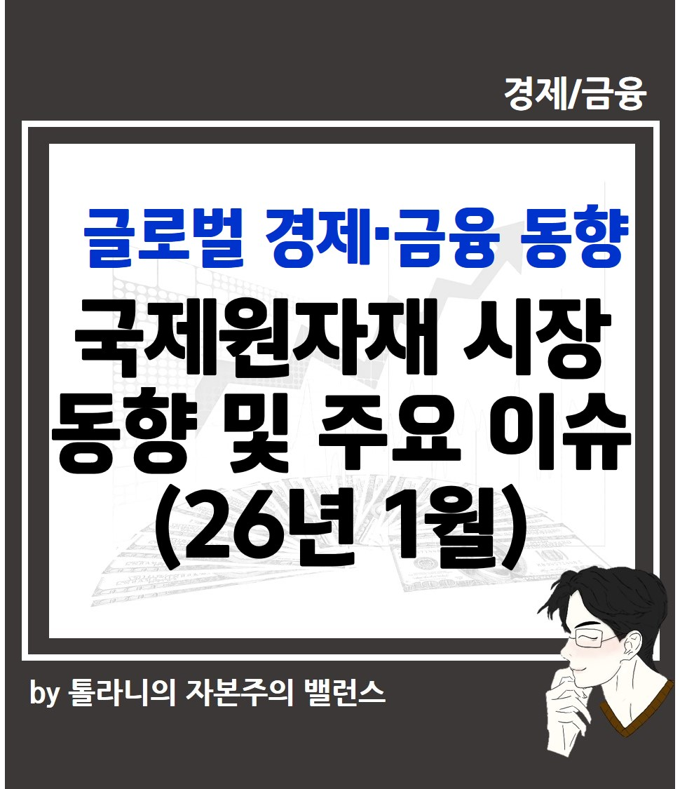 이에 ‘국제원자재 시장 동향 및 주요 이슈(26년 1월)’ 관련하여 국제금융센터 보고서를 통해 좀 더 자세히 알아보도록 하겠습니다.