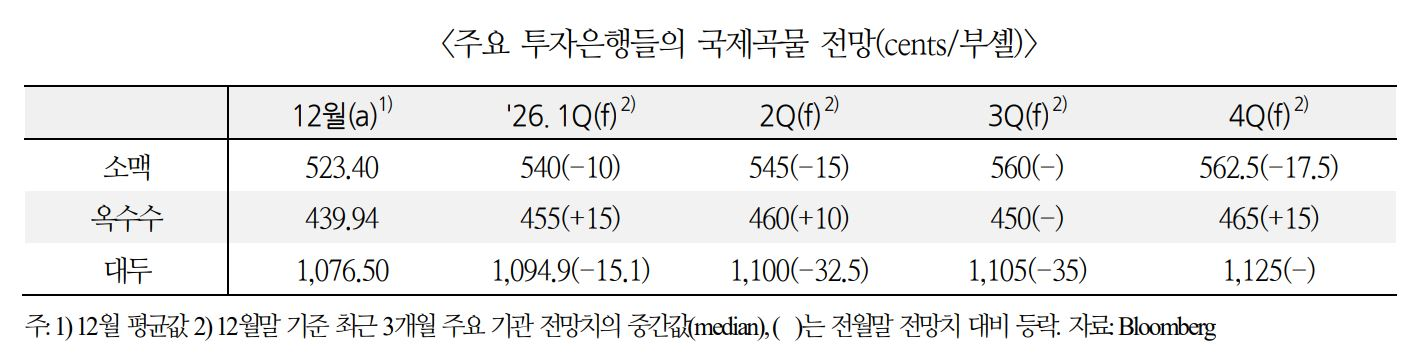 ㅇ 국제곡물 가격은 생산 호조에 따른 공급 과잉 가능성 등에 힘입어 전체적으로 안정적인 흐름이 예상. 다만 브라질 대두를 필두로 남미 수확이 본격적으로 시작된다는 점에서 관련 동향과 농업기상여건에 대한 모니터링을 강화할 필요