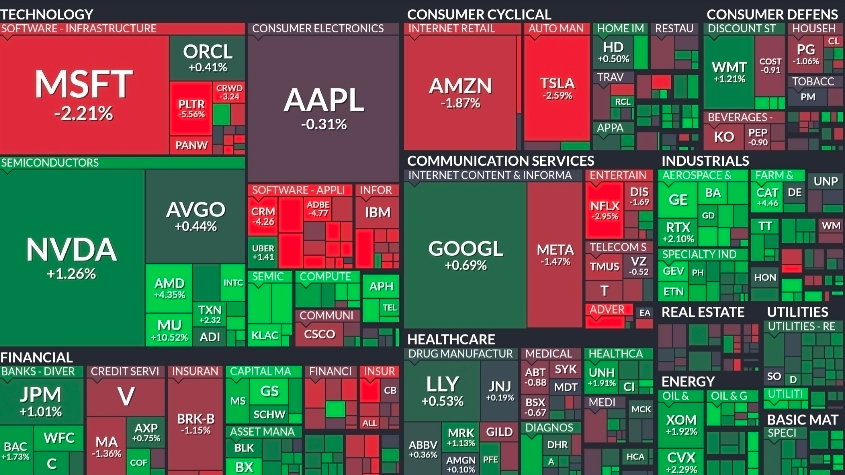 대형 기술주는 방향이 갈렸고 반도체와 일부 방어 섹터가 힘을 받는 형태였습니다. 엔비디아 상승과 AMD 급등 그리고 마이크론 급등이 동시에 나타난 반면 테슬라는 7거래일 연속 하락으로 압박을 받았고 일부 빅테크도 조정이 동반되며 지수의 발걸음을 무겁게 만들었습니다. 시장 심리는 공포탐욕지수 45로 중립권에 머물러 과열도 과도한 공포도 아닌 상태였으며 결국 뉴스의 헤드라인보다 실적과 수급이 어디로 몰리는지가 하루의 결론을 결정한 모습입니다.