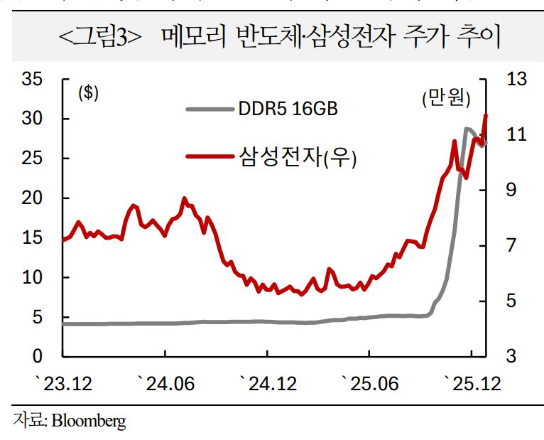 - 범용 메모리 가격은 올해 하반기 추가로 20~30% 상승할 여력이 있어 26년 삼성전자 및 SK하이닉스 영업이익 전망치를 기존 전망 대비 각각 21.5% 및 9.7% 상향