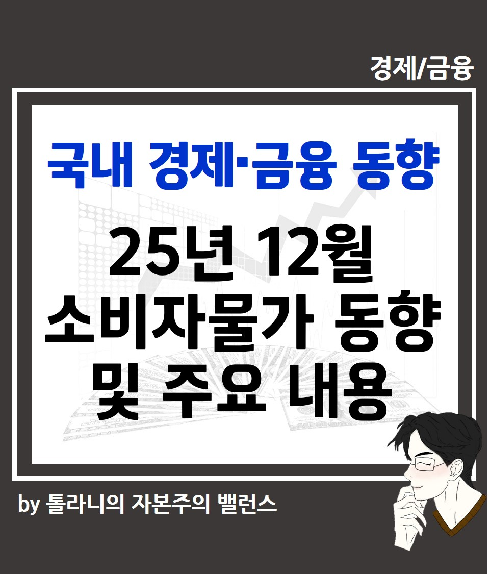 이에 ‘25년 12월 소비자물가 동향 및 주요 내용’ 관련하여 기회재정부 보도 자료를 통해 좀 더 자세히 알아보도록 하겠습니다.