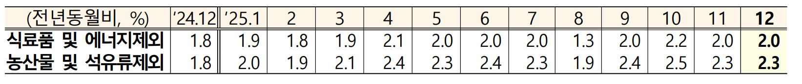 개인서비스 상승폭 둔화 등으로 전년동월비 2.0% 상승(’25.11월 2.0%)