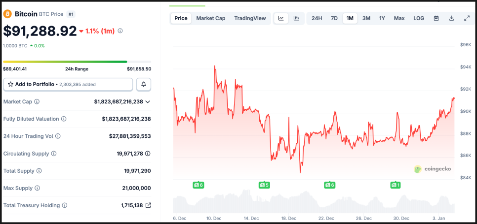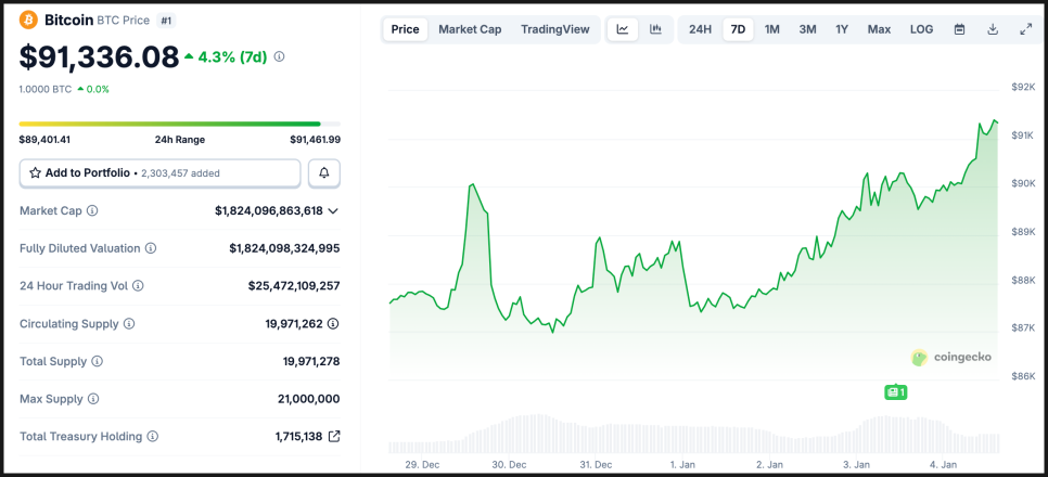 2026년 1월 4일, 현 시점 핵심 암호화폐 이슈 정리해 드리겠습니다.