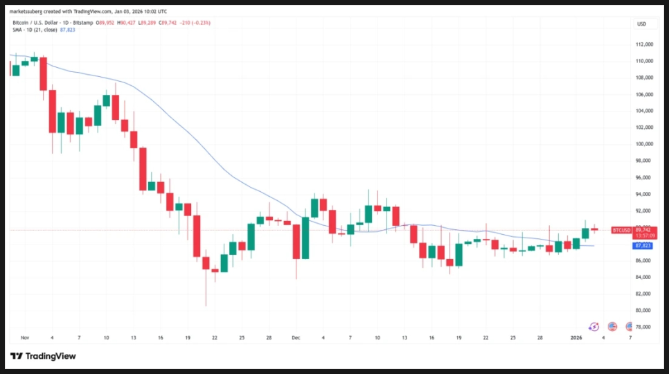 한편 비트코인의 이동평균선에 집중하고 있는 테크니컬 분석도 있는데요. 현재 비트코인 21일 이평선이 약 8만7천 달러 수준인데, 가격이 이 선 위에 머무는 한, 1월 흐름은 상승 쪽이라는 판단입니다.