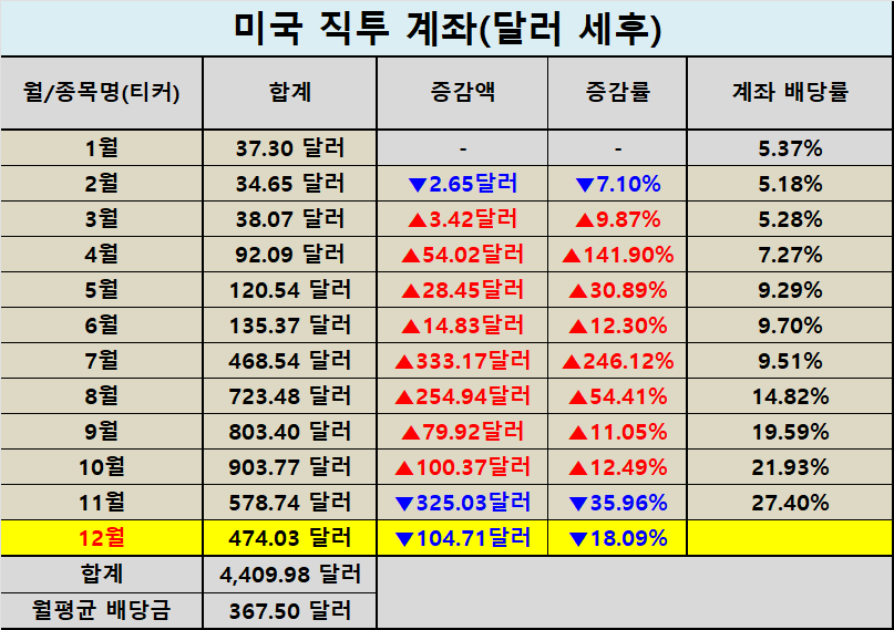 | 이번 달 배당금 | 474.03달러 |