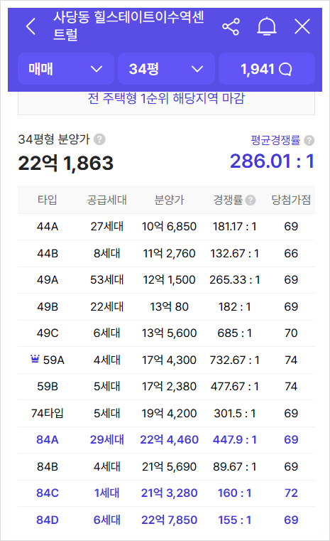 현재 거래되는 매물은 기본 10억 이상이다. 평당 4~5천만원 수준으로 거래되고 있는데 공시지가를 보면, 평당 1,500만원~3천만원까지 다양하다. 공시지가는 평당 2천만원으로 가정하고 감정평가액은 보정률 1.2~1.6배 수준으로 하여 1.5배 곱했다. 2천만원 × 1.5이므로 평당 3,000만원 수준이므로 조합원 종전자산평가액은 2,378억이다.