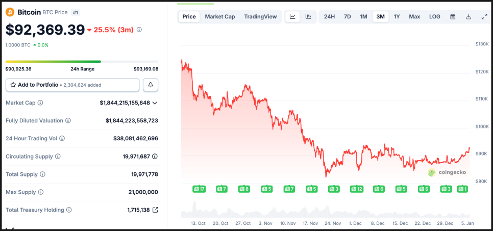 그리고 시점도 중요합니다. 새해 첫 주는 늘 투자자들이 포지션을 새로 잡는 구간인데, 현재 가격대의 비트코인이 다시 한 번 매력적인 진입 구간으로 인식되고 있다는 분석이 나옵니다. 연말 내내 조정과 정체를 겪었던 자산이기 때문에, 리밸런싱 수요가 자연스럽게 붙는다는 설명이죠.