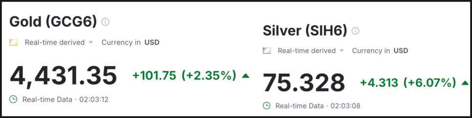 게다가 금과 은 등 귀금속 선물 가격도 무섭게 상승하고 있습니다. 현재의 반등이 에브리싱 랠리라는 시각에 힘을 보태는 부분이죠.