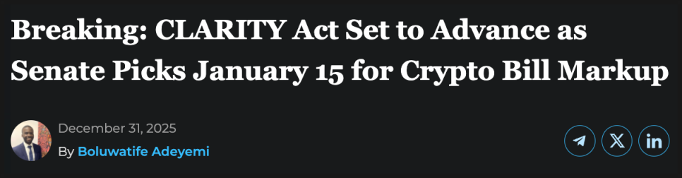 한편 미국 크립토 규제 논의, 그러니까 CLARITY 법안을 둘러싼 상원의 움직임이 1월 들어 급박해졌습니다.
