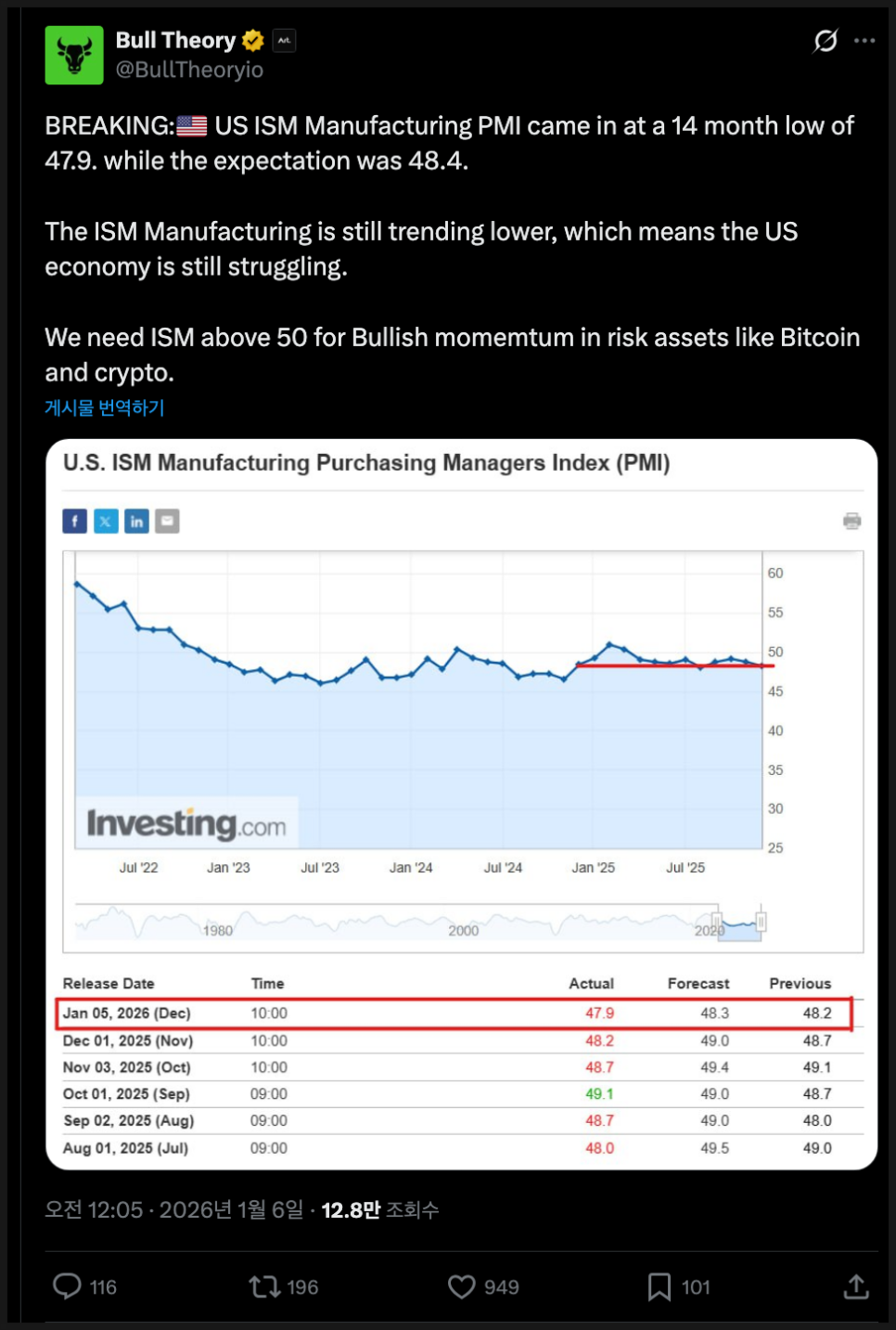 일부 분석가들은 여전히 신중한 입장입니다. 한 애널리스트는 ISM 지수가 최소 50 이상으로 올라서야 비트코인 같은 위험자산의 강한 상승 추세가 유지될 수 있다고 봤습니다. 지표가 장기간 부진하면 연준이 더 이른 시점에 정책 대응에 나설 가능성도 거론됩니다. 반면 다른 쪽에서는 PMI가 50 아래에 머무는 환경에서는 자금 배분이 방어적으로 흐를 수밖에 없어, 고위험 자산으로 유동성이 빠르게 몰리기는 어렵다는 해석도 나옵니다.