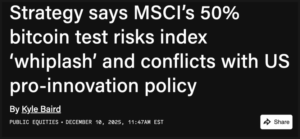 다만 변수도 있습니다. 스트래티지는 최근 MSCI에 공식적으로 문제를 제기했습니다. 암호자산 비중이 총자산의 50%를 넘는 기업을 글로벌 주가지수에서 제외하겠다는 제안에 반대 의견을 낸 겁니다. 회사 측은 이런 기준이 도입되면 지수 편출입이 과도하게 흔들리고, 미국 정부가 추진하는 디지털 자산 혁신 기조와도 맞지 않는다고 주장했습니다. MSCI의 최종 결정은 1월 15일쯤 나올 예정입니다.
