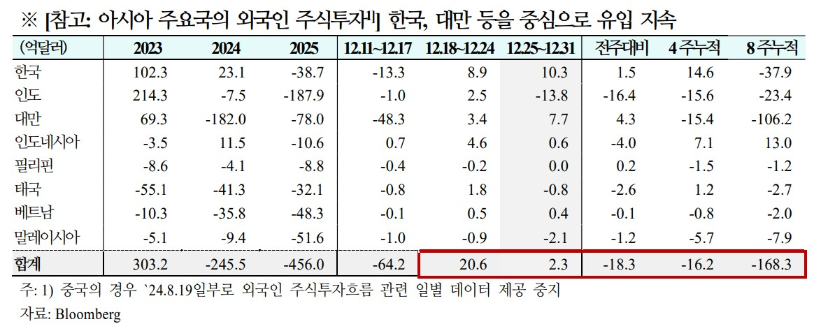 이에 ‘주간 글로벌 투자 자금흐름('25.12.25 (목) ~ 12.31 (수))’ 관련하여 국제금융센터 보고서를 통해 좀 더 자세히 알아보도록 하겠습니다.