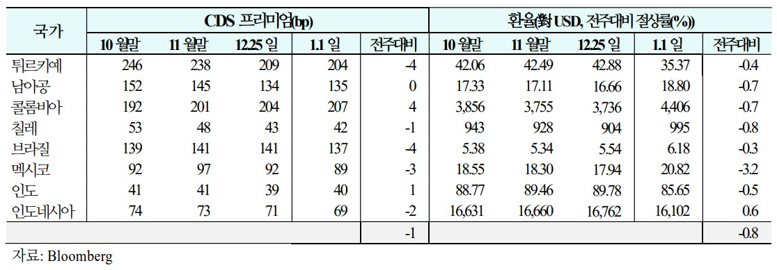 03. 주간 신흥국 CDS 및 환율 동향('25.12.26 (금) ~ 26.1.1 (목))