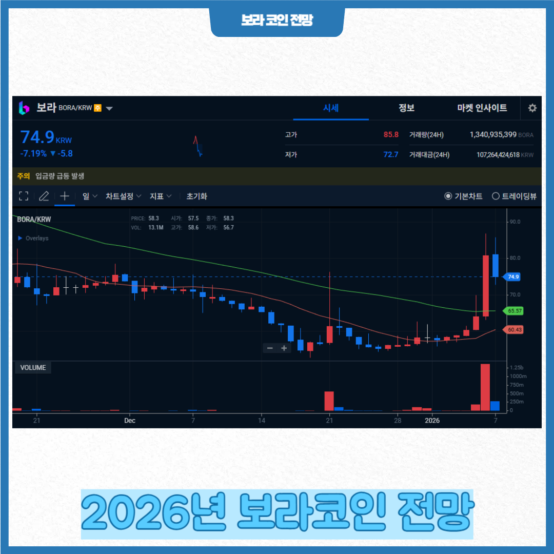 보라 코인이 2026년에는 특정 저항선을 돌파하며 상승할 가능성이 있다는 기술적 의견도 존재합니다.