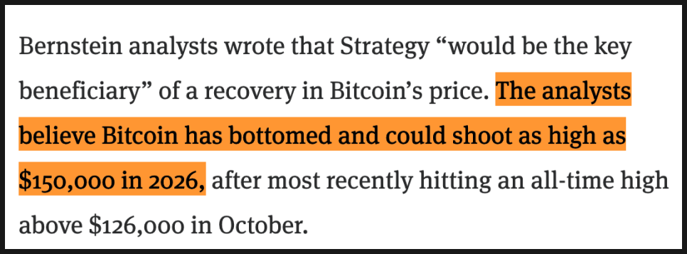 이에 대해 번스타인은 스트래티지가 비트코인 가격 반등의 최대 수혜자가 될 가능성이 크다고 평가했습니다. 이들은 비트코인이 이미 바닥을 찍었고, 2026년에는 최대 15만 달러까지 갈 수 있다는 전망도 내놓았습니다. 참고로 비트코인은 작년 10월에 이미 12만6천 달러를 넘는 사상 최고가를 기록한 바 있습니다.