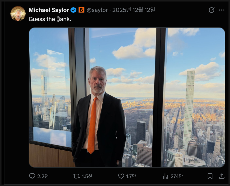 마이클 세일러는 스트래티지의 포스티을 담백하게 리트윗했는데요.