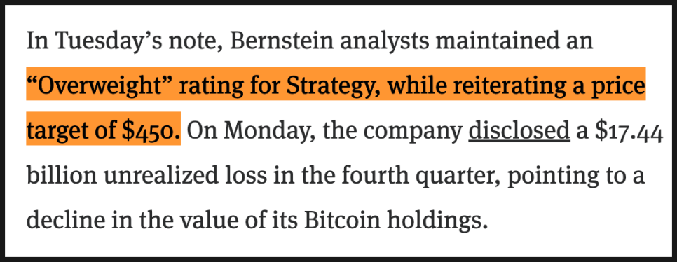 번스타인은 여전히 스트래티지에 대해 비중 확대, 즉 오버웨이트 의견을 유지하면서 목표 주가를 450달러로 제시했습니다. 또 최근 스트래티지가 22억5천만 달러 규모의 달러 준비금을 쌓아 배당을 사실상 선지급한 점에 대해서는 꽤 보수적이고 신중한 선택이라고 평가했습니다.
