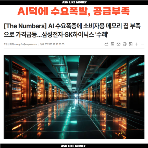 25년 들어 DDR4 메모리 키트 가격은 25~30달러 수준에서 80~100달러로 급등하였으며 NAND 플래시도 한 달만에 20%나 상승하였다. 삼성은 25년 4분기에만 DRAM 가격을 15~30%, NAND 가격을 5~10% 인상하여 메모리 반도체 독재자로 군림하기 시작하였다. 그 덕인지 삼성전자의 주가는 사상 최고가를 기록하고 사람들이 환호하고 있다. SK하이닉스 역시 72만원을 뚫으며 사상 최고가를 올리고 있다. 이는 과거 암호화폐 채굴 붐이 발생했을 때 그래픽카드 가격이 폭등한 것과 비슷한 사례이다.