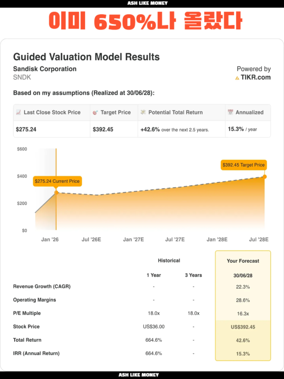 게다가 삼성전자, SK하이닉스 같은 경쟁자가 향후 샌디스크의 기술경쟁 투자에 의해 비용 출혈을 불러일으킬 수 있다고도 보는 시각이 있다. 장비 제조, 공정 혁신, 제품 다각화 등에서 경쟁사 대비 우위가 유지되어야 하는데 경쟁 심화에 따른 비용 부담이 커진다면 샌디스크의 주가 상승에 제동이 걸릴 수 있다. 샌디스크는 이미 650%나 폭등한 주식이다. 마냥 회의적으로 보는 것도 경계해야 하지만 이제는 너무 오른 주가에 함부로 들어갔다간 물릴 수도 있으니 주의해야 한다.