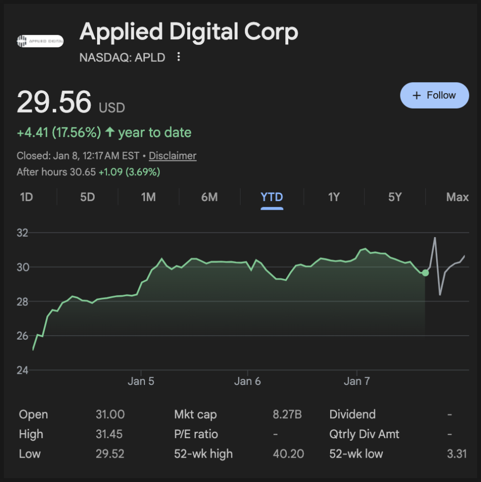 2026년 1월 8일 종목은 어플라이드 디지털(Applied Digital)입니다.