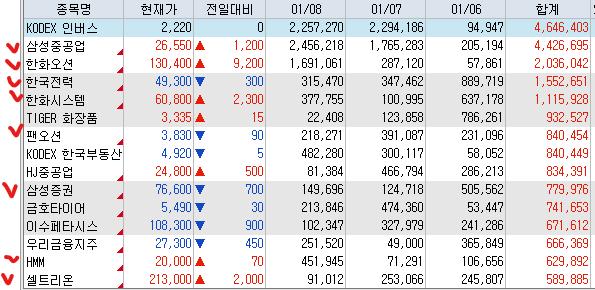 매도 : 한화 현대차(+70.02%) 현대차우 Tiger차이나휴머노이드로봇 삼성전자(+93.29%) 현대위아(112.50%) 삼성에스디에스 태광 HLB 피에스케이홀딩스 엔씨소프트 주성엔지니어링 한화오션 KODEX200 이노와이어리스 테크윙 HJ중공업 Sk오션플랜트 파마리서치 실리콘투 에이비엘바이오 퓨런티어 Tiger차이나전기차 가온칩스 KODEX로봇액티브 온코닉테라퓨틱스 한회비전 코오롱티슈진