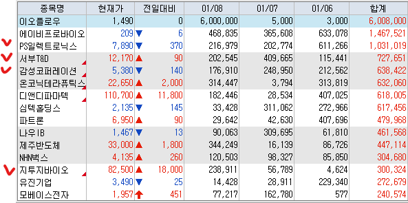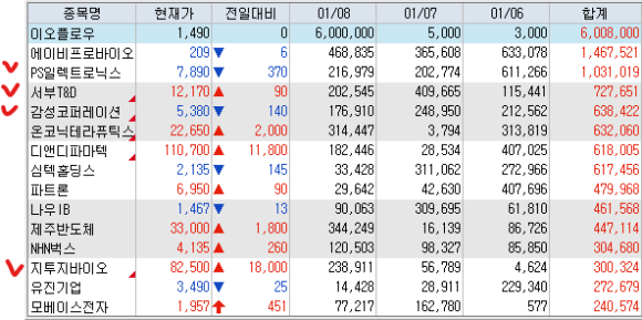 장 전 삼성전자가 4분기 사상 최대 실적(4분기 매출액 93조 원, 영업이익 20조 원)을 발표하면서 상승세를 나타냈지만, 다음으로 실적을 발표하는 SK하이닉스로 수급이 이동하는 모습이 보였음(삼성전자 -0.99%, SK하이닉스 +2.83%)
