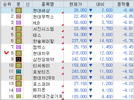 한편, CES가 후반부에 접어들자 자동차와 로봇주가 차익실현 매물이 출회되며 하락