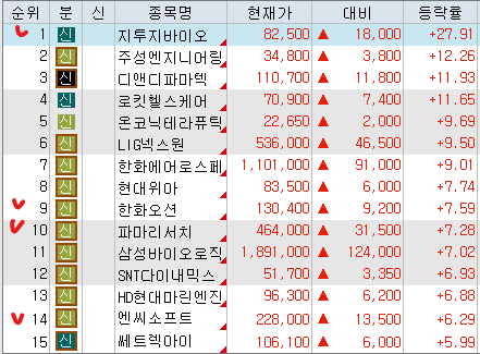 글로벌 IB의 목표주가 상향에 삼성바이오로직스가 상승하면서 바이오 업종 전반이 강세를 나타냈음(지투지바이오 +27.91%, 디앤디파마텍 +11.93%, 파마리서치 +7.28%, 삼성바이오로직스 +7.02%, 인벤티지랩 +5.93%, 휴젤 +3.58%, 에이비엘바이오 +2.38%, 알테오젠 +2.23%)