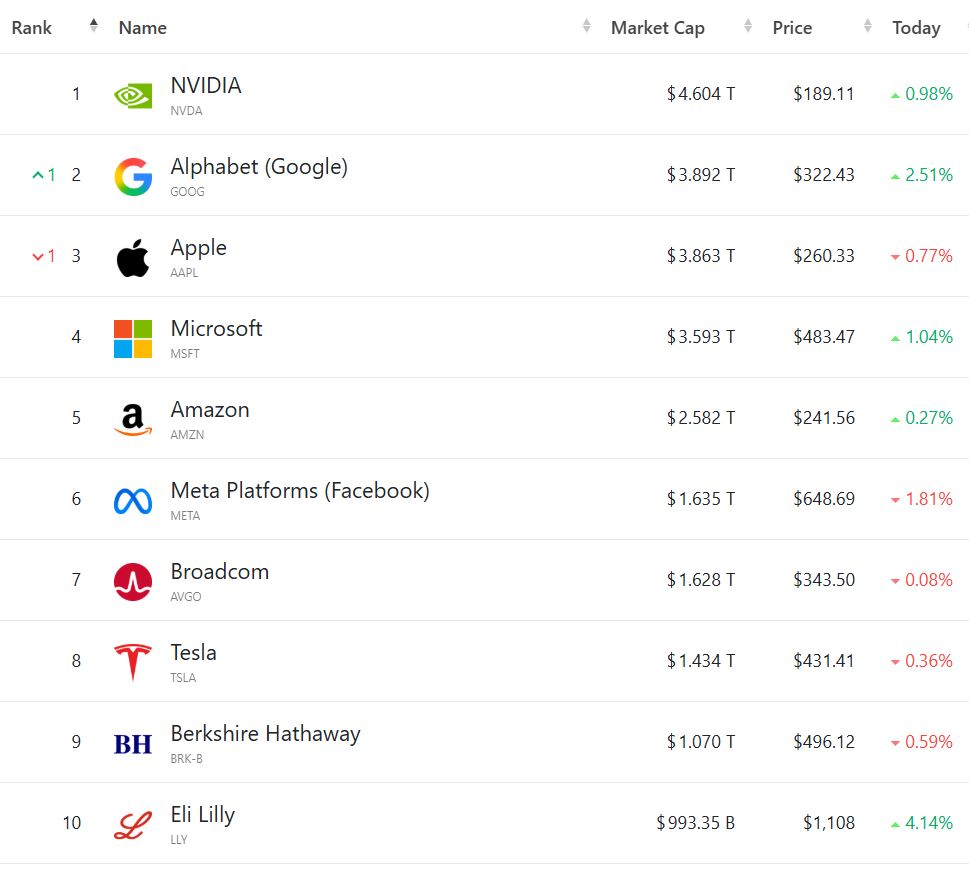 엔비디아는 전일 대비 +0.98% 상승하였으며, 알파벳 +2.51%, 마이크로소프트 +1.04%, 아마존 +0.27% 오른 반면, 애플 -0.77%, 메타 -1.81%, 테슬라 -0.36% 하락하면서 거래를 마쳤습니다.
