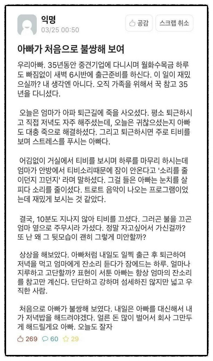 아빠가 불쌍해 보인다는 딸