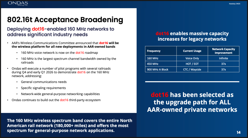 철도 통신을 담당하는 온다스 네트웍스 부문에서도 의미 있는 진전이 있었습니다. 미국 철도협회(AAR)가 dot16라는 무선 통신 기술을 자사 보유 주파수 전반의 공식 로드맵 표준으로 채택했다는 점이 핵심인데요. 단기간에 매출이 폭발한다기보다는, 2026년 이후 북미 철도 통신 인프라 업그레이드의 중심에 온다스가 서게 될 가능성을 의미합니다. 경영진 역시 이 부문에 대해서는 보수적으로 가이던스를 유지했지만, 장기 전략 자산으로서의 가치는 분명히 짚었습니다.