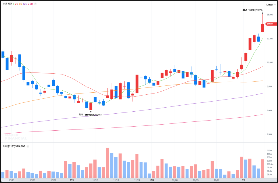 아마도 1월 16일에 열릴 투자자 데이를 전후로 변동성이 커질 것 같은데, 상승세를 이어갈지 조정이 나올지 지켜보도록 하겠습니다.