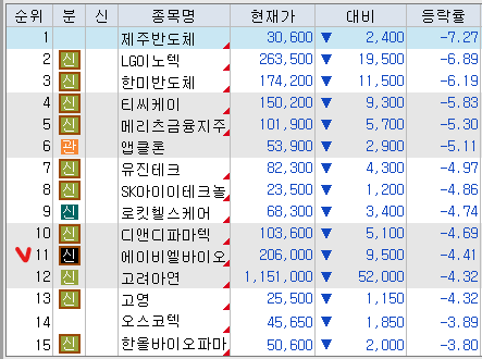 한편, 글로벌 기술주 약세 영향, 차익매물 등으로 반도체주가 하락(제주반도체 -7.27%, 한미반도체 -6.19%, HPSP -3.49%)