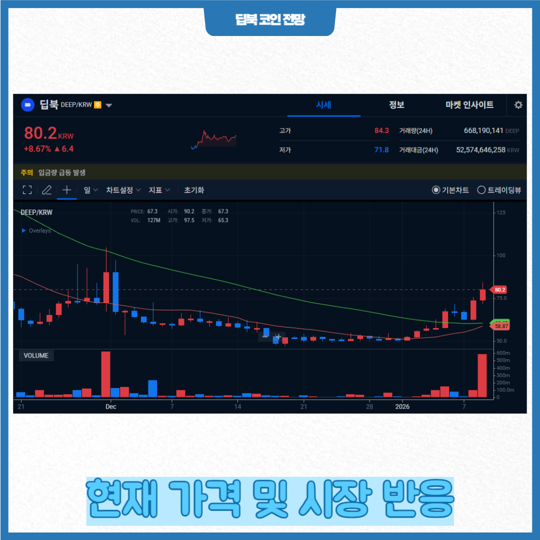 2026년 초 현재 암호화폐 시장은 전반적으로 변동성이 높습니다. 그 속에서도 딥북 코인은 커뮤니티 성장률과 거래소 상장 이슈로 인해 일정 수준의 관심을 유지하고 있습니다.