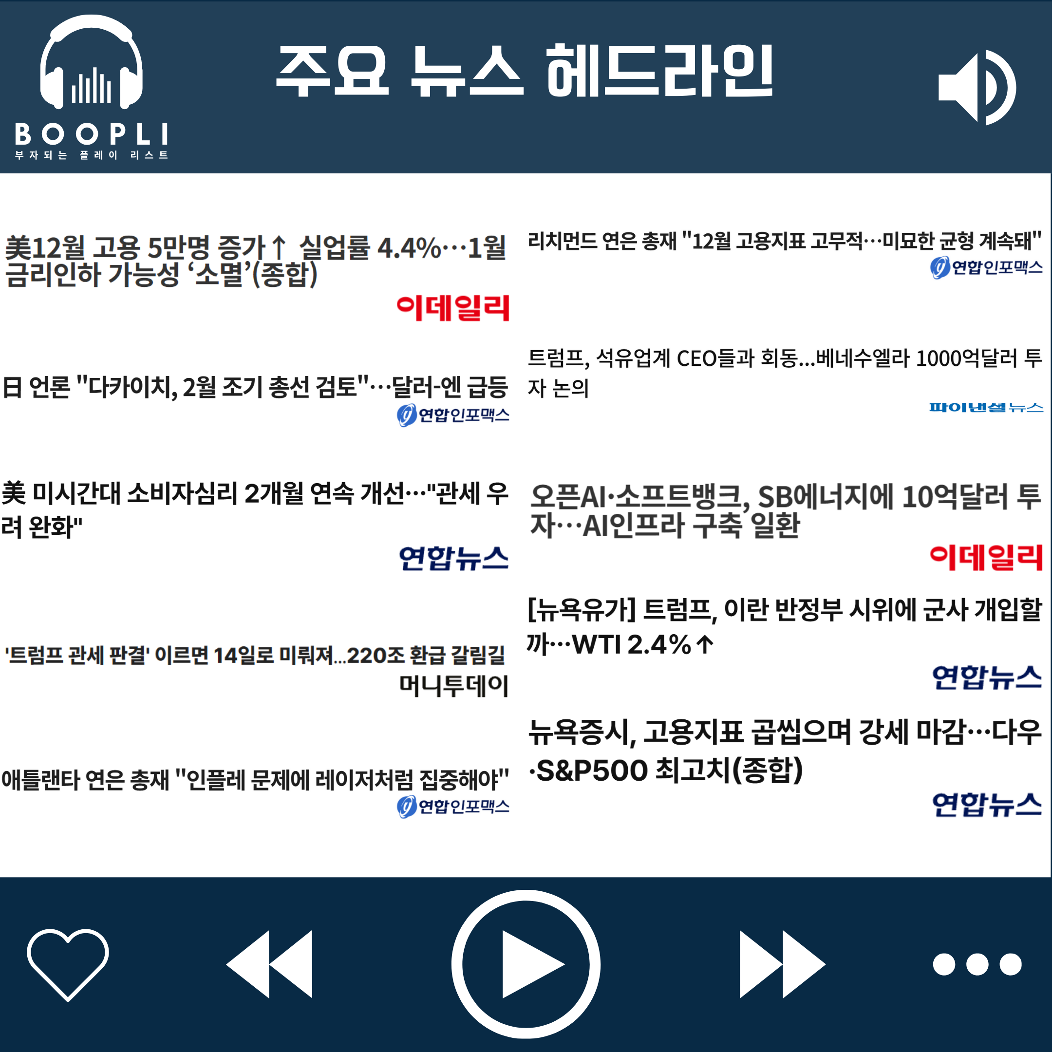 전일 미국 증시는 12월 고용보고서의 엇갈린 신호에도 불구하고 경기 연착륙 기대가 유지되는 가운데, 트럼프 관세 관련 대법원 판결 지연과 미·일 유동성 공급 기대가 맞물리며 다우(+0.48%), S&P500(+0.65%), 나스닥(+0.81%), 러셀2000(+0.76%) 등 주요 지수 모두 상승 마감