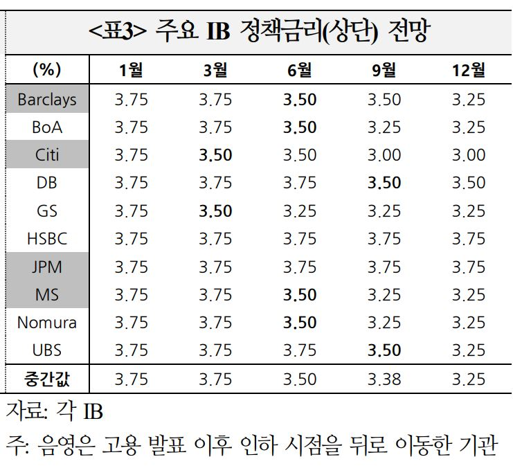 * 다음 금리인하 시점으로 10개 IB 중 2곳은 3월, 6곳은 6월 이후를 예상