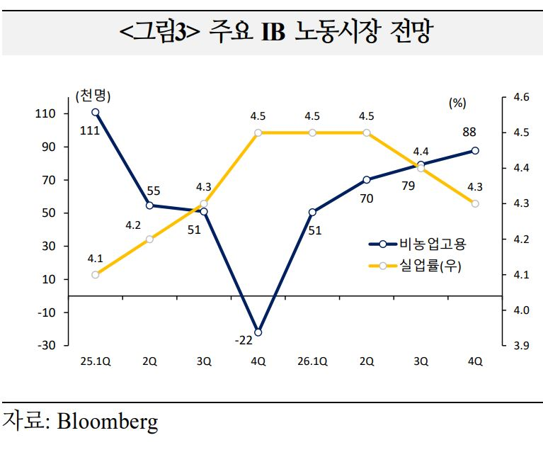 ㅇ 이번 실업률이 주요 IB들이 제시한 1월 금리인하 기준(4.6~4.7%)을 하회해 대부분 IB들이 금리전망을 동결로 선회