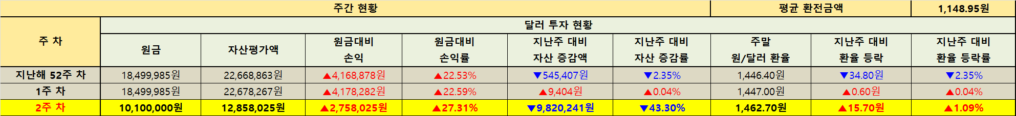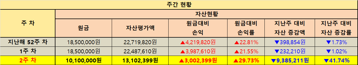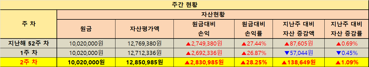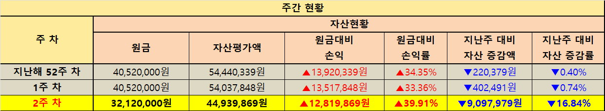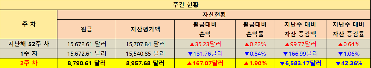 지난주 대비 자산 증감 현황